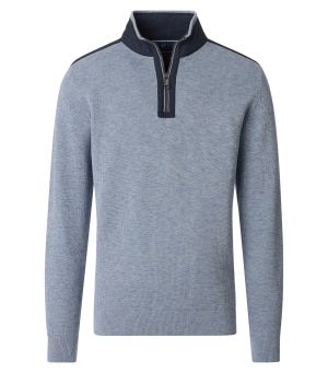 Sportosan elegáns, cipzáras nyakú pulóver, kotrasztos nyakkal, terrakotta színben, 100% pamut.