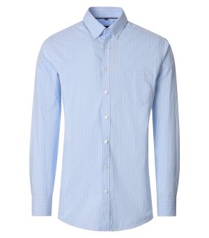 Sportosan elegáns hosszú ujjú ing, legombolt gallérral, kék csíkos mintával, 100% pamut.
