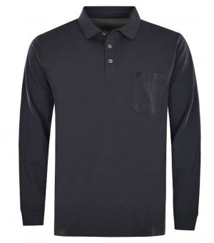 Sportosan elegáns, galléros póló, háromgombos nyakkal, sötétkék színben, 62% pamut, 38% poliészter.