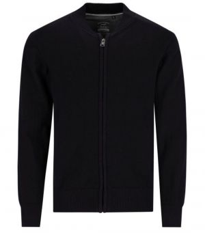 Sportosan elegáns kötött kardigán, cipzáras záródással, sötétkék színben, 100% pamut.