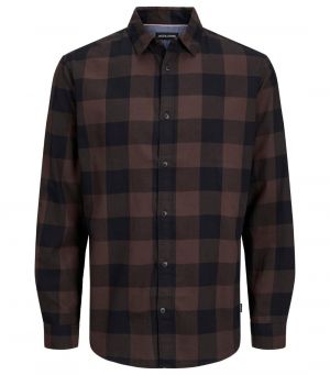 Sportos, hosszú ujjú ing, kockás mintával, bordó-sötétkék színben, 100% pamut.
