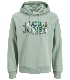 Sportos kapucnis pulóver, színes logóval az elején, szürke színben, 60% pamut, 40% poliészter.