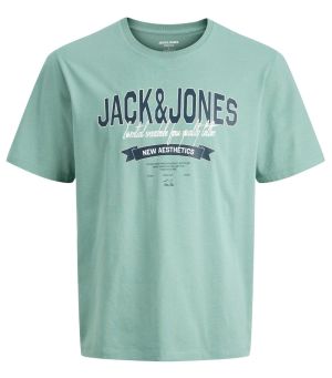 Kerek nyakú, rövid ujjú póló, elején nyomattal, szürkés kék színben, 100% pamut.