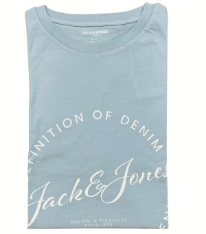 Kerek nyakú rövid ujjú póló, elején felirattal, bézs színben, 100% pamut.