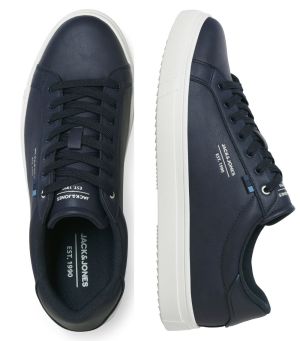Divatos sneaker cipő, kényelmes viselet, fekete fűzővel, fekete színben, fehér talppal, műbőr felsőrész, gumi talp.