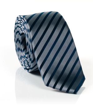 Elegáns nyakkendő, kb., 170 cm hosszú, bordó-sötétkék csíkos mintával, 100% selyem.
