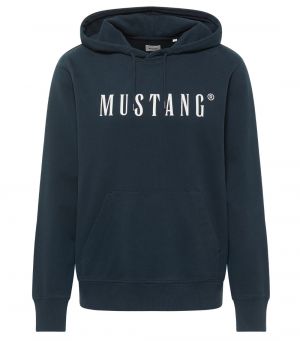 Sportos kapucnis pulóver, kenguru zsebbel, elején logóval, fekete színben, 100% pamut.