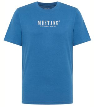 MUSTANG kerek nyakú, rövid ujjú póló, elején márkajelzéssel, sötétkék színben, 100% pamut.