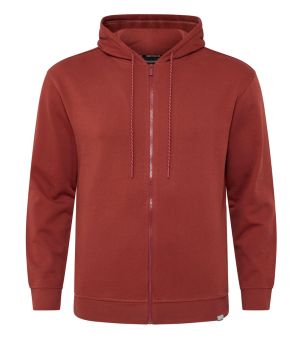 Sportos kapucnis kardigán, állítható kapucnival, sötét zöld színben, 100% pamut.