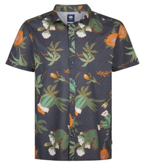 Vagány rövid ujjú ing, nagy mintával, bézs színben, 100% pamut.