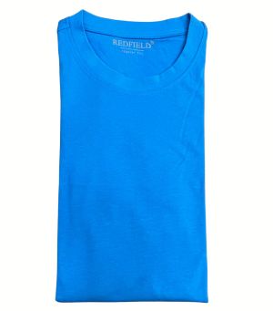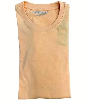 Kerek nyakú, rövid ujjú póló, sárga színben, 100% pamut.
