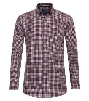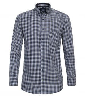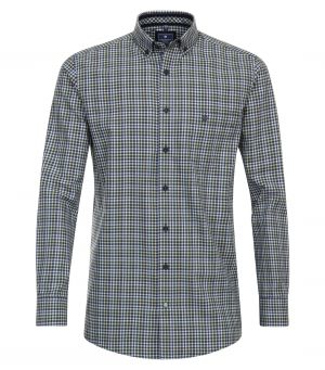 Sportosan elegáns hosszú ujjú ing, legombolt gallérral, apró kockás mintával, 100% pamut.