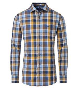 Sportosan elegáns hosszú ujjú ing, színes kockás mintával, 100% pamut.