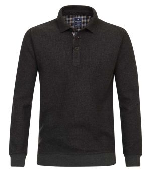 Sportosan elegáns kötött pulóver, gombos nyakkal, sötétkék színben, 60% pamut, 40% poliészter.