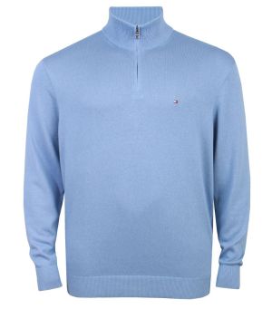 TOMMY HILFIGER kötött pulóver, cipzáras nyakkal, sötétkék színben, 95% pamut, 5% kasmír.