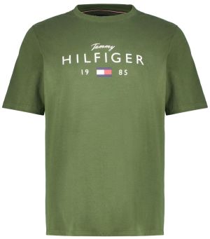 TOMMY HILFIGER kerek nyakú rövid ujjú póló, elején látványos márkajelzéssel, fekete színben, 100% pamut.
