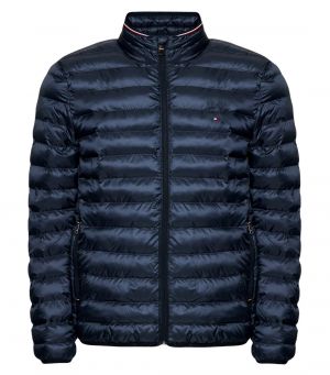TOMMY HILFIGER könnyű, steppelt dzseki, belső zsebbe elcsomagolható, piros színben, 100% poliészter.