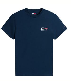 TOMMY JEANS kerek nyakú rövid ujjú póló, bal mellen márkajelzéssel, fehér színben, 100% pamut.